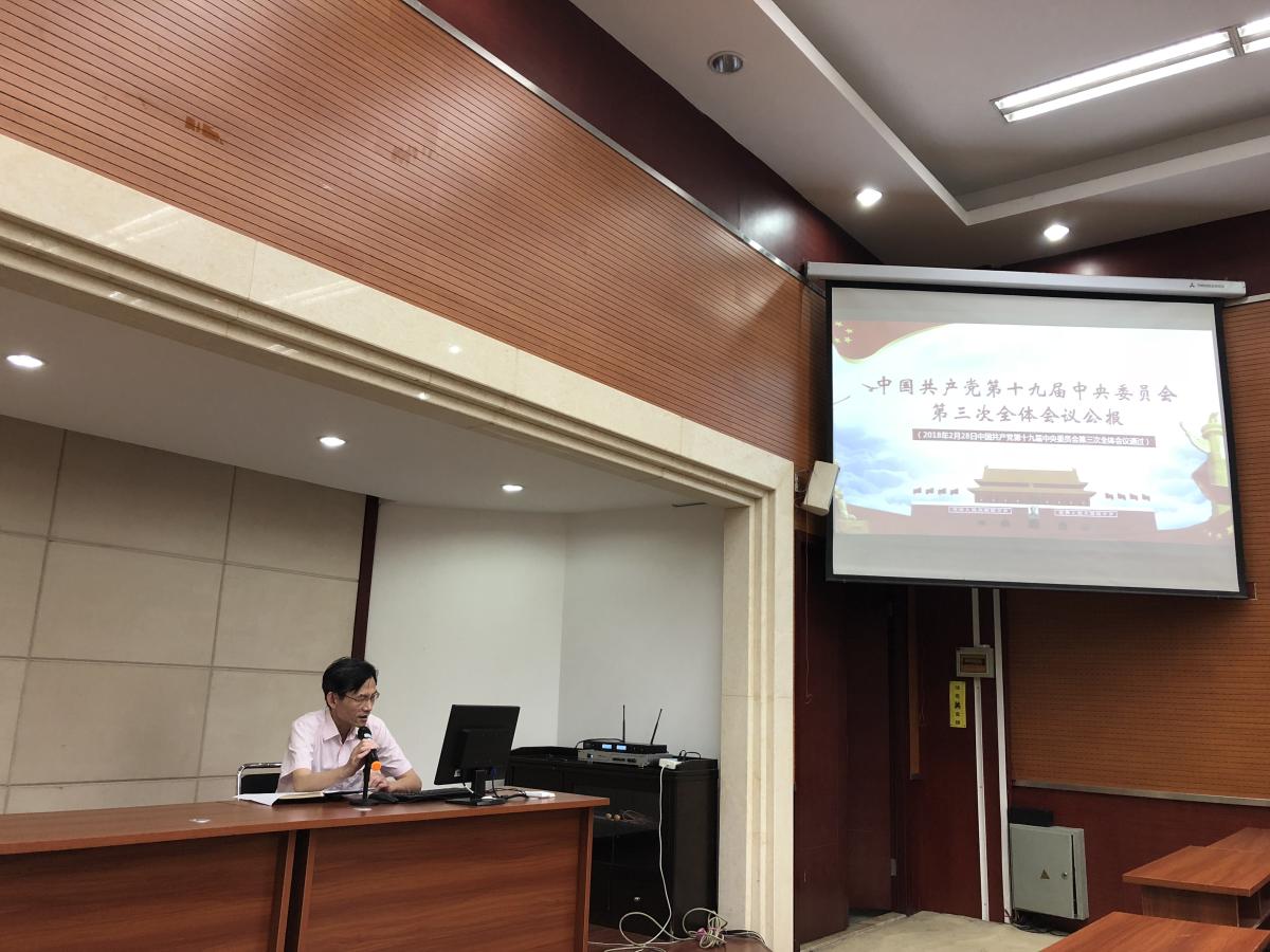 为了进一步学习宣传贯彻党的十九大精神,深入推进“两学一做”学习教育常态化制度化628下午16:00力学与工程学院党委金建明书记为研究生党员和机关及退休教工党支部讲授专题党课,题目深入学习中国共产党第十九届中央委员会第三次全体会议公报”。