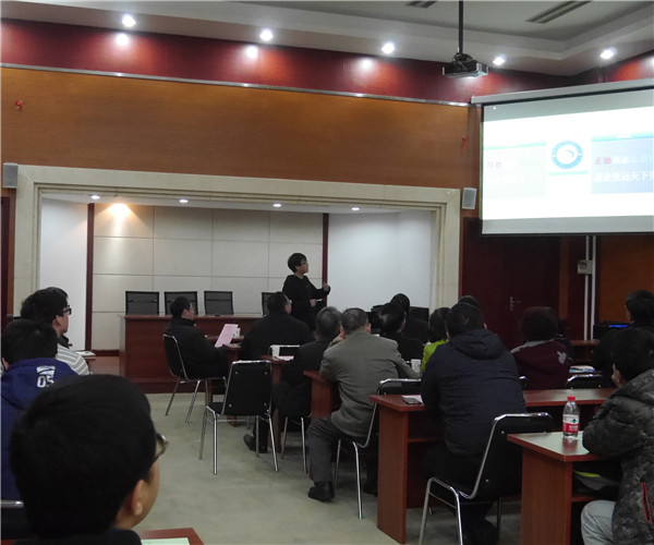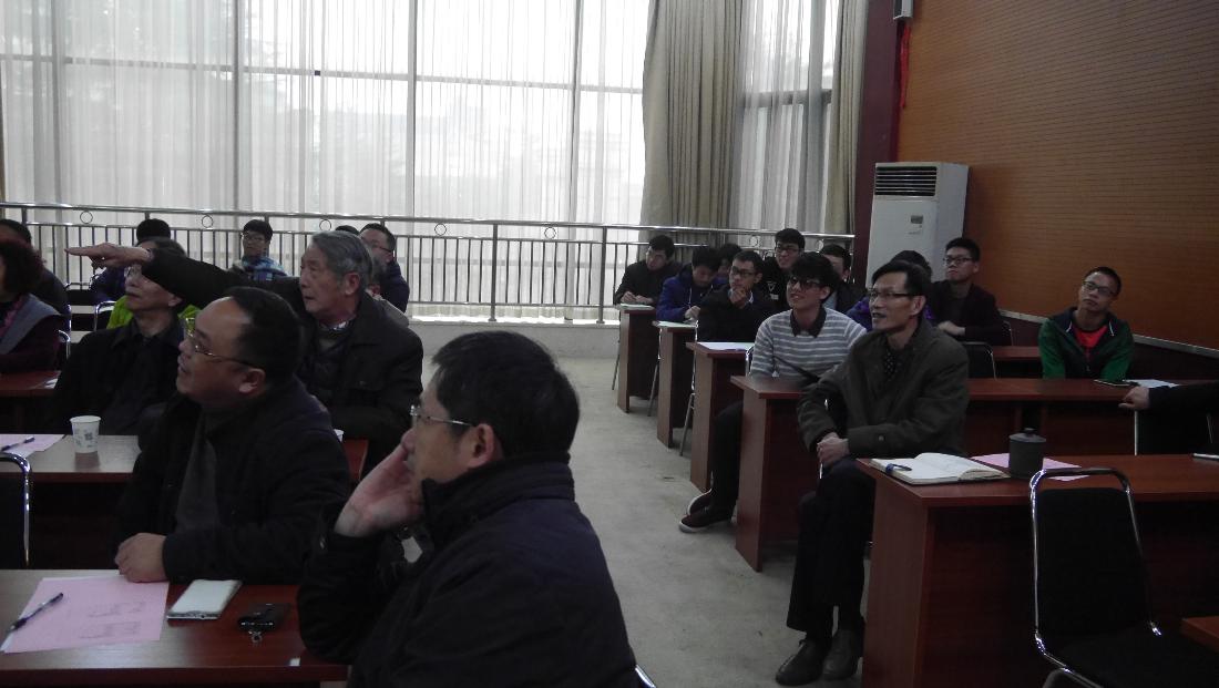 20161215日下午,学院举办院徽院训答辩会,出席本次会议的有学院党政领导、党委委员、工会主席、教师代表、离退休老师代表、学生代表等。