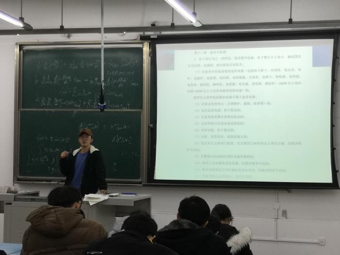 本次主题班会围绕以下内容展开:一、辅导员胡持老师带领全体同学一起学习了《必赢565net官网本科生考试违规处理办法》(西交校教[2018]29号)全部内容和《必赢565net官网学生纪律处分规定(试行)》,告诫同学们不能触碰纪律红线,无论考试、学习还是做人,诚实守信是十分重要的品质。如果考试期间不诚实,不仅会受到纪律处分,同时对别的同学来说不公平,更重要的是损害了个人品质,也达不到考试本来的目的,可谓百害而无一利;第二,杨老师围绕防火防盗防骗防踩踏、宿舍安全、人身安全以及财产安全等安全问题进行强化教育。提醒同学们即将到来的元旦假期尽量不要到人多的地方凑热闹,多利用假期加强复习;冬季天气寒冷,但坚决不能再宿舍使用违章电器,威胁大家的人身安全;妥善管理自己的财物,注意防骗防盗,尤其不能碰网络借贷;注意出行安全,及时防范、远离危险等。