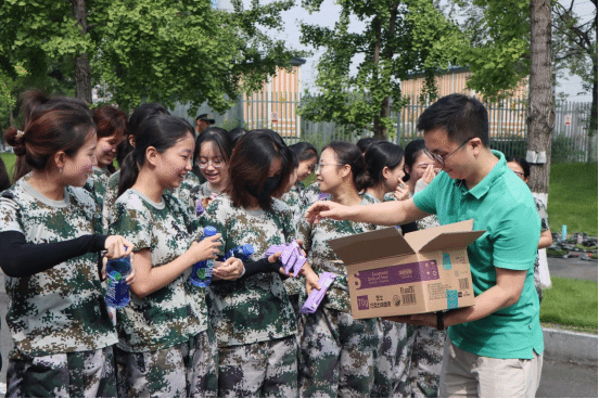 2024年8月18日、21日上午,必赢565net官网党委书记栗民、院长李翔宇、党委副书记孔祥彬、团委书记张容华及2022级本科生辅导员古定翱一行前往学院2022级大三学生的军训场地,亲切慰问正在刻苦训练的同学们。学院充分考虑到军训期间学生们的身体需求,精心为每位同学准备了一瓶运动饮料和一包饼干,帮助他们在严格的训练中及时补充体力,展现了学院对学生的细致关怀。