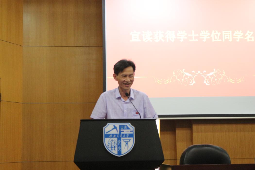 典礼在庄严的国歌声中拉开帷幕。首先,院长康国政教授代表学院致辞,他希望毕业生牢记“竢实扬华,自强不息”的交大精神,承袭“双严的优良传统,在学习和工作岗位上继续取得佳绩,常回母校、母院看看。接着,党委金建明书记宣读了获得学士学位的同学名单,他希望毕业生再接再厉、取得更多成绩。紧接着,参加典礼的各位老师分别为优秀毕业生颁发了荣誉证书,为毕业生颁发了毕业证书、学位证书、毕业纪品。毕业生代表丁立同学代表全体毕业生发言,感谢学校、学院老师的培养教育,希望学校、学院发展得更好。