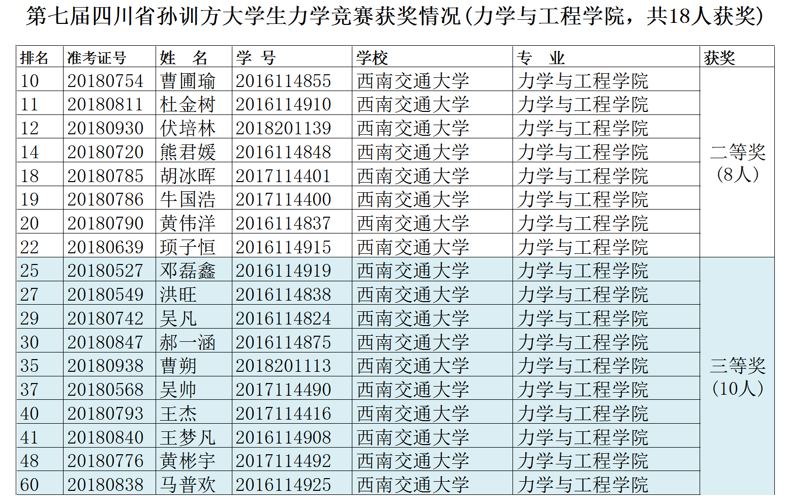 本次力学竞赛的圆满举行,充分激发了同学们学习基础力学的兴趣,使同学们在理论学习的同时也锻炼了力学基础课程的应用能力。再此祝贺本次力学竞赛获奖的同学。同时也希望获奖同学再接再厉,认真准备明年五月份的第十二届全国周培源大学生力学竞赛,再创佳绩!