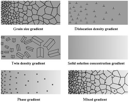 图1 梯度结构金属材料的类型(摘自:李毅,梯度结构金属材料研究进展,中国材料进展,2016, 35: 658-665)