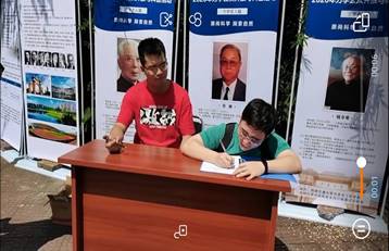 展览进行时,驻足观看的公众对力学名家的卓越贡献以及学院应对疫情灵活线上教学手段表示高度赞赏,值守人员也与之展开激情讨论,并对观众们参观的过程中提出的问题给予解答。在了解完力学知名学者、力学专业教育教学、力学领域科研成果等相关信息后,公众自发在留言簿上表达了对力学专业的期望与祝福,并选择与名家们合影来留住这一精彩时刻。