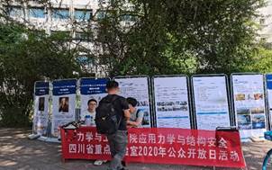 为积极响应《四川省科学技术厅关于四川省重点实验室在2020年科技活动周期间开展公众开放日活动的通知》的文件精神,必赢565net官网力学与工程学院应用力学与结构安全四川省重点实验室根据自身特点与当前实际情况,设计出以“科学抗疫、创新强国”为主题的“力学公众开放及科普活动”,并于2020年8月24-29日圆满开展了公众开放日活动。该系列活动以展览形式在犀浦校区与九里校区同时进行,取得较好的社会反响。