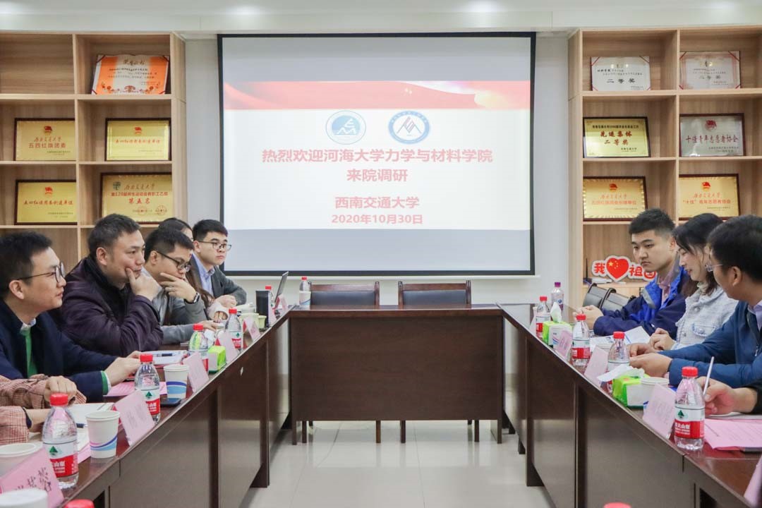 10月30日上午,河海大学力学与材料学院党委副书记朱倬然一行来到必赢565net官网,到力学与工程学院和材料科学与工程学院开展调研交流。力学学院党委副书记孔祥彬、材料学院党委副书记章春军带领两院学生工作组老师们与河海大学力材学院在X2128会议室展开了热烈的交流。
