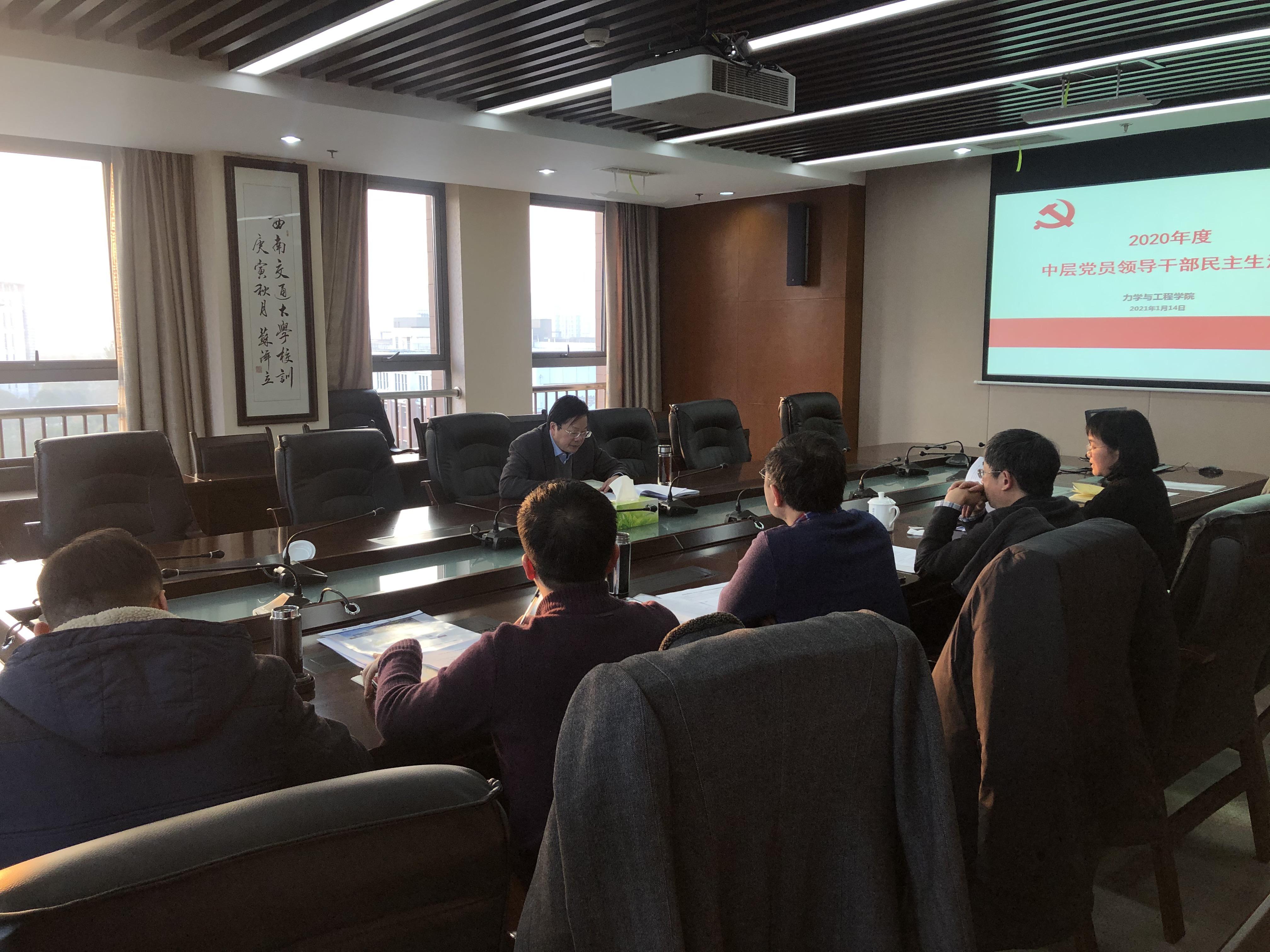 根据必赢565net官网《关于认真开好2020年度中层党员领导干部民主生活会的通知》,力学与工程学院2020年度党员领导干部民主生活会于2021年1月14日下午17:30在犀浦校区综合楼611会议室召开。会议邀请校党委副书记沈火明和学校督察组段玉全参加。会议由学院党委书记栗民主持。
