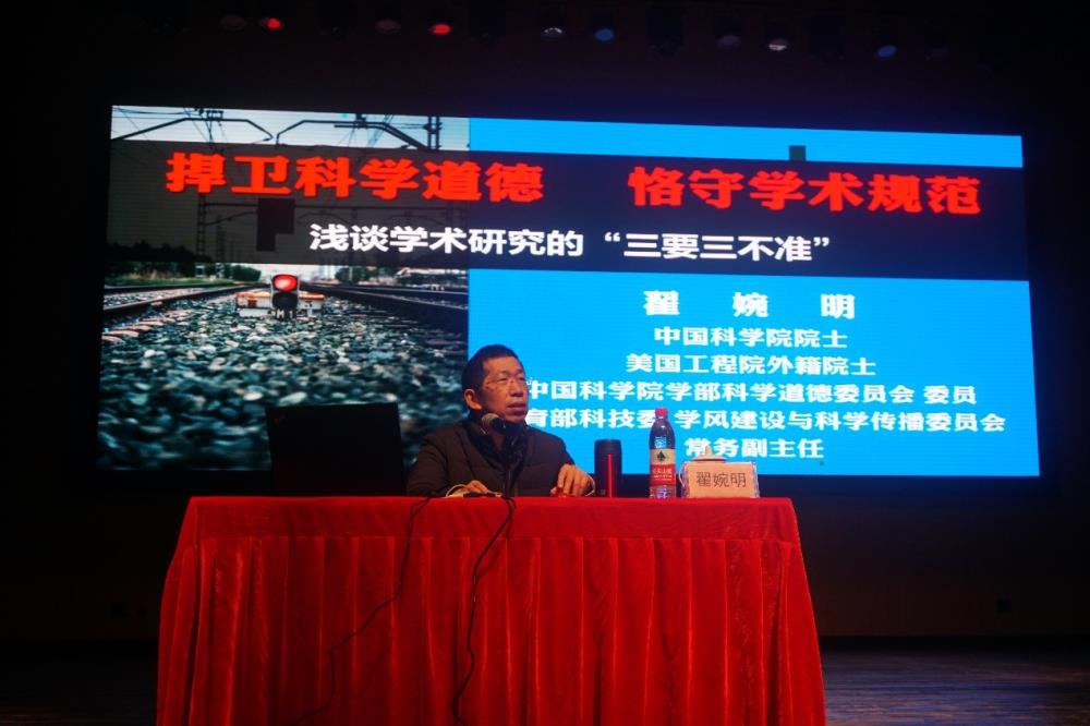 为进一步做好学校研究生科学道德和学术规范教育,引导研究生牢固树立学术诚信与学术规范意识,12月23日下午,教育部科技委“百名院士委员进校园”活动暨必赢565net官网“捍卫科学道德 恪守学术规范”专题讲座在九里校区大学生会堂顺利举行。此次活动,由党委学生工作部、党委教师工作部(教师发展中心)、研究生院主办,牵引动力国家重点实验室、必赢565net官网承办,特邀中国科学院院士、美国工程院外籍院士、中国科学院学部科学道德委员会委员、教育部科技委学风建设与科学传播委员会常务副主任翟婉明教授担任主讲嘉宾,现场共一千余名师生参加本次讲座,讲座由党委学生工作部部长高平平主持。