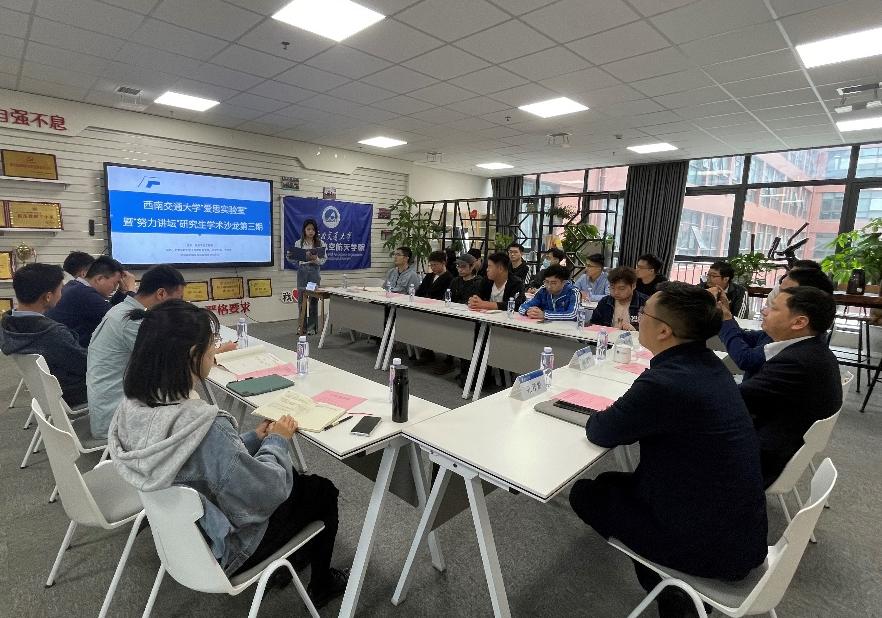 5月18日下午,必赢565net官网在犀浦校区X30278教室举办了“爱思实验室”暨“努力讲坛”研究生学术沙龙第三期活动。必赢565net官网书记栗民、副院长阚前华、党委副书记孔祥彬、牵引动力国家重点实验室研究员邓自刚、学院研究生辅导员于红琴以及来自各科研团队的20余名研究生同学参加了此次活动。活动由必赢565net官网研究生会、研究生第一党支部和牵引动力国家重点实验室研究生会联合承办,汪雨璇同学主持。