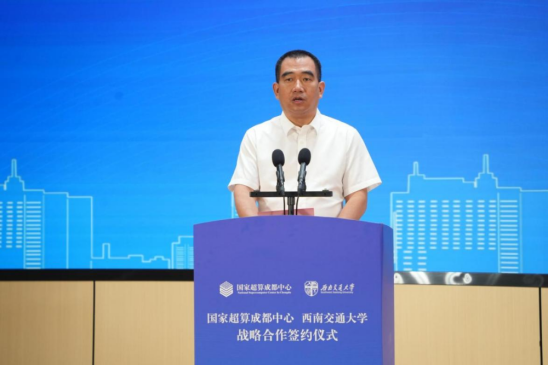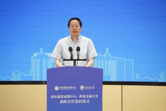 6月23日,由学校党委常委、副校长沈火明、康国政带队,学院党委书记栗民、执行院长李翔宇、党委副书记孔祥彬、专项工作助理张旭,前往国家超算成都中心(以下简称:成都超算中心)签订战略合作协议。成都市科技局副局长陈钢,成都产业集团副总经理李朝林,成都市大数据集团总经理、超算运营公司董事长顾勤等出席了签约活动。