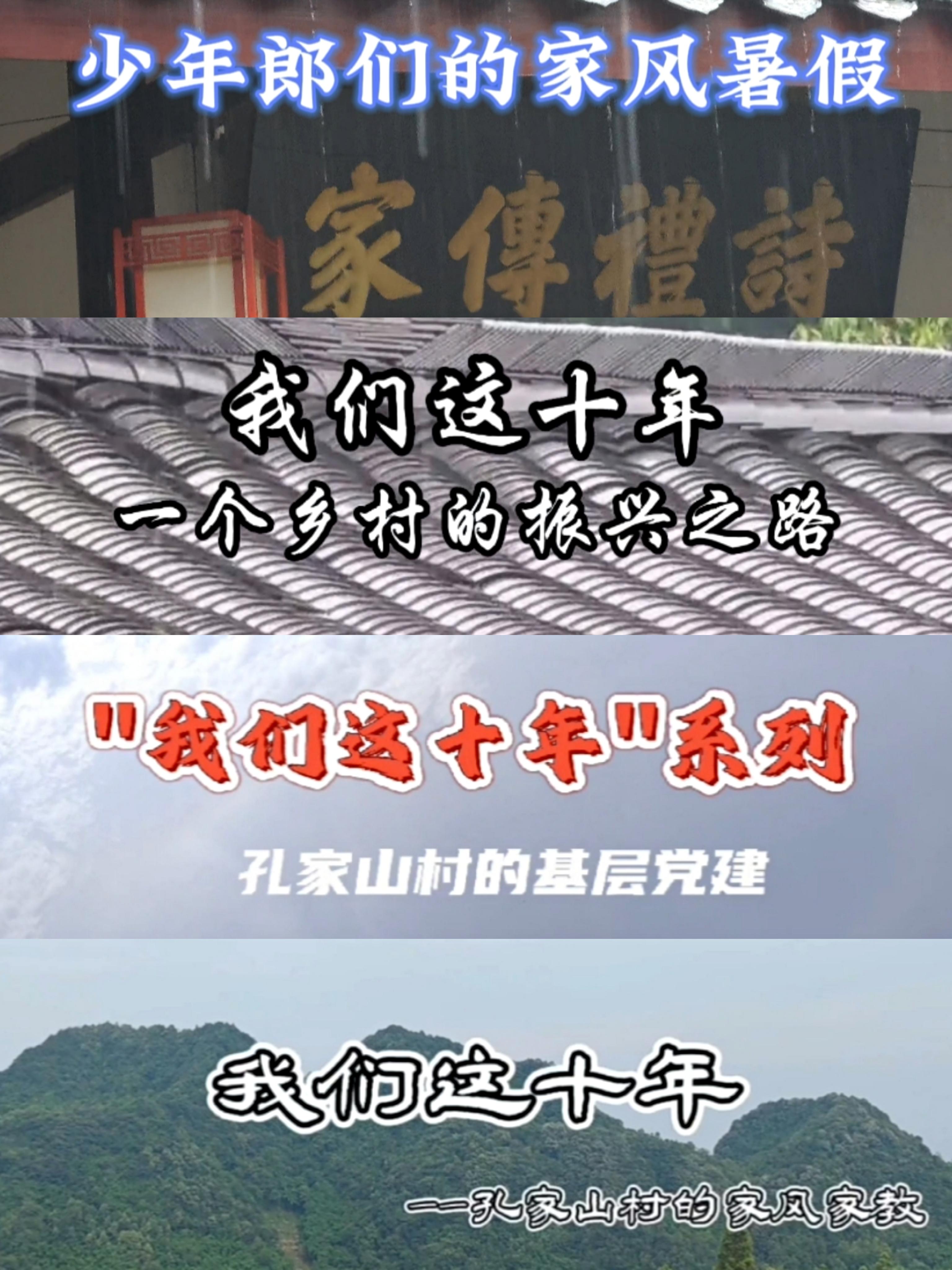 在结束实践活动后,实践队师生回校进行后期视频剪辑,制作了《少年郎们的家风暑假》、《我们这十年——一个乡村的振兴之路》《我们这十年——孔家山村的家风家教》《我们这十年——孔家山村的基层党建》等4个短片,全面展现孔家山村十年来发生的翻天覆地的变化,并向社会大众宣传介绍孔家山村。系列短片在必赢565net官网通识课“为学为事为人”课程微信视频号、抖音发布以来,已经获得近3万播放量。