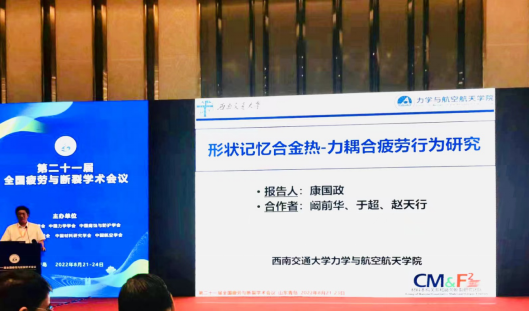 会议设立了大会邀请报告和分会场研讨等活动,邀请了10位在疲劳与断裂研究领域做出卓越贡献的学者做大会报告,其中我校康国政副校长以“形状记忆合金热-力耦合疲劳行为研究”为题进行了精彩的大会主旨报告,介绍了形状记忆合金热-力耦合疲劳行为的实验和理论研究方面的最新研究成果,引起了与会者的热烈讨论。