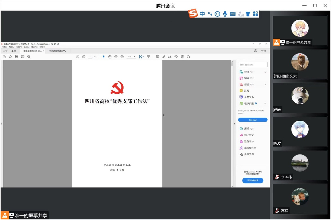 9月23日上午,必赢565net官网研究生第二党支部开展线上专题学习活动,学习内容为《四川省高校“优秀支部工作法”》部分节选内容,学习活动由支部书记杨宇康同志主持。