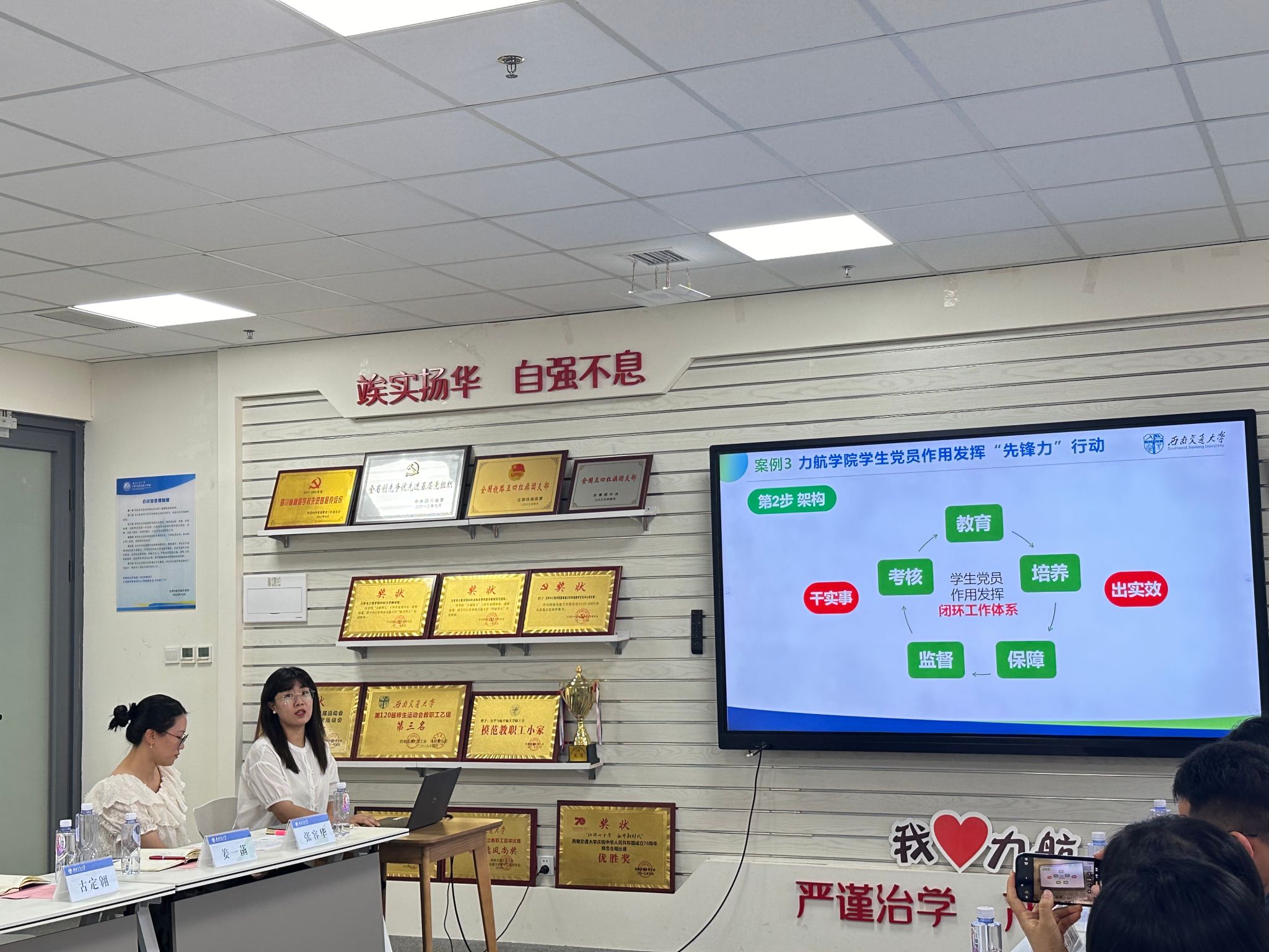 辅导员姜一菡介绍了学院从亮身份、列清单、搭平台、强监督、做评议五个方面构建学生党建先锋力行动的闭环体系和党员日常教育管理的具体工作,探索发挥学生党员先锋作用的长效机制。