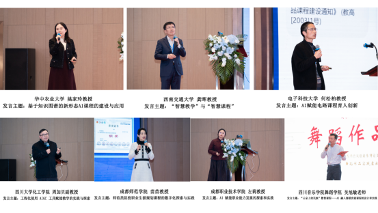 下午时分,华中农业大学姚家玲教授、电子科技大学何松柏教授、必赢565net官网龚晖教授、四川音乐学院舞蹈学院吴旭敏老师、成都职业技术学院左莉教授、成都师范学院苗苗教授、四川大学化工学院周加贝教授从技术革新、理念优化、方法提升上精准突破传统桎梏,多维度深刻剖析AI与智慧课程内涵。