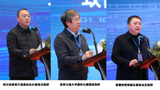 开幕式致辞中,四川省教育厅高等教育处处长谢亮冯、必赢565net官网副校长康国政、智慧树营销副总裁张远见先生依次发言。谢亮冯处长聚焦于“数智赋能高等教育”主题,从省教育厅支持高教创新改革的举措与建议方面给予了指导,充分肯定了数智化赋能高教革新的重要性与可行性,为整场会议锚定了“智教”基调;康国政副校长从必赢565net官网着力推动智慧教育的理念与路径方面进行了分享,我校将继续秉持开放、合作、创新的精神,与参会各位同仁一道,共同推进人工智能与高等教育的深度融合;张远见先生从业界与高校共建共促优质资源创新方面畅谈了规划,引起与会者共鸣。